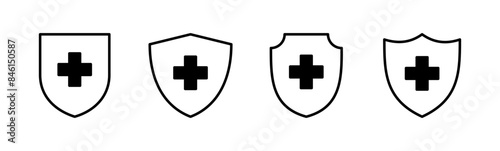 © AAVAA, Obraz premium Health insurance icon set. Insurance health document icon