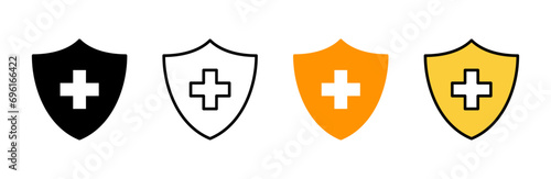 © Lunaraa, Obraz premium Health insurance icon set vector. Insurance document sign and symbol