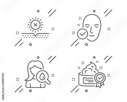 Fototapeta premium Health skin, Moisturizing cream and No sun line icons set. Cream sign. Clean face, Face lotion, Uv protect. Best lotion. Beauty set. Line health skin outline icon. Vector