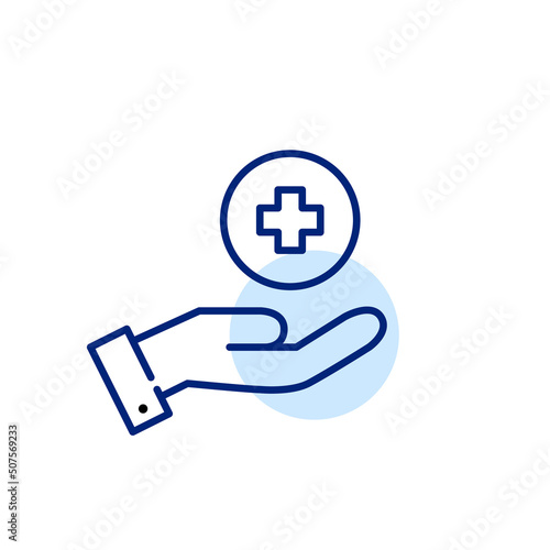 © yasnaten, Obraz premium Healthcare insurance. Medical coverage. Pixel perfect, editable stroke line icon