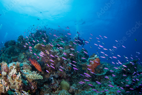 Fototapeta premium Healthy colorful corals and fish on the reef