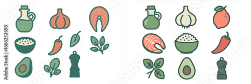 © Антон Сальников, Naklejka premium Healthy Food Ingredients Assortment, Minimalist flat design