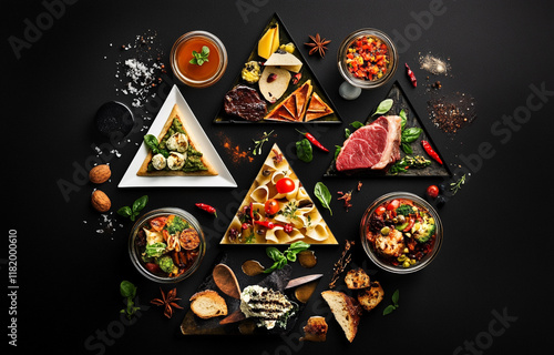 © sultan, Obraz premium Healthy food leaf vegetable Top view of plate with variety of vegetables