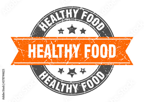 Fototapeta premium healthy food round stamp with ribbon. label sign