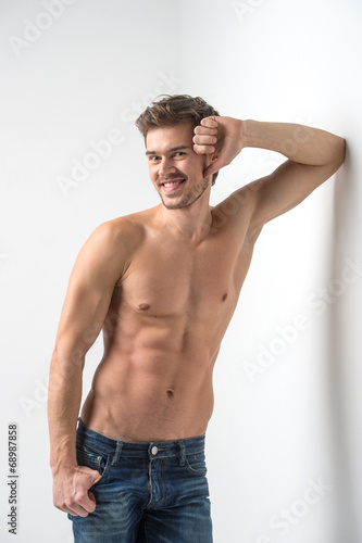© BlueSkyImages, Fototapeta premium Healthy muscular young man in jeans.