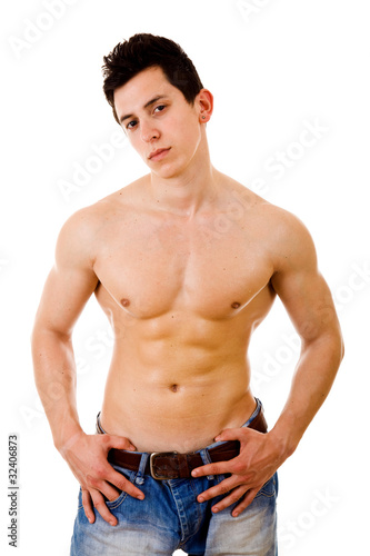Fototapeta premium Healthy muscular young man. Isolated on white background