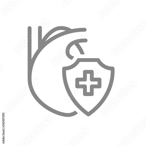 Fototapeta premium Healthy protected heart line icon. Heart treatment, first aid for circulatory system disease symbol