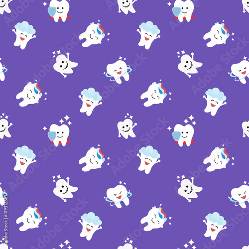 Fototapeta premium Healthy teeth seamless pattern. Oral dental hygiene. Children teeth care....