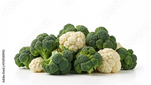 © Lasvu, Obraz premium Heap of broccoli and cauliflower isolated on background.