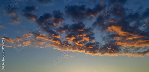 © SandaRina, Naklejka premium Heap of clouds in the sky at sunset time