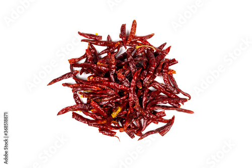 © Kritchai, Naklejka premium Heap of dry red chili on white background