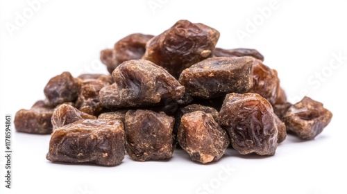 Obraz premium Heap of Kurma or dates, typical food during iftar, isolated on white...
