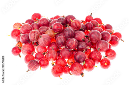 Fototapeta premium Heap of red gooseberry berries isolated on white background.