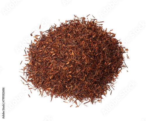 Fototapeta premium Heap of rooibos tea isolated on white, top view