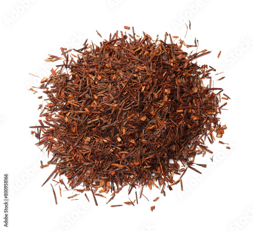 Fototapeta premium Heap of rooibos tea isolated on white, top view