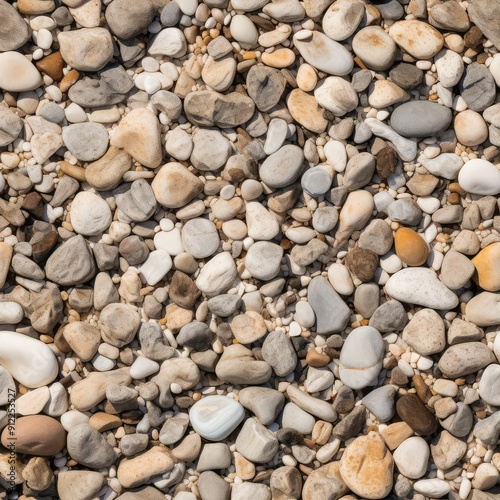 © ange1011, Naklejka premium Heap of Sand, Gravel, Pebbles and Concrete Mix for Construction Closeup, Sandy Ground with Small Stones