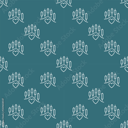 Fototapeta premium Heart and Financial Chart vector Stock Analysis seamless pattern in outline style