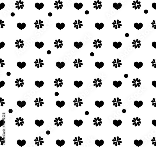 © ya_nataliia, Obraz premium Heart and flower black seamless pattern