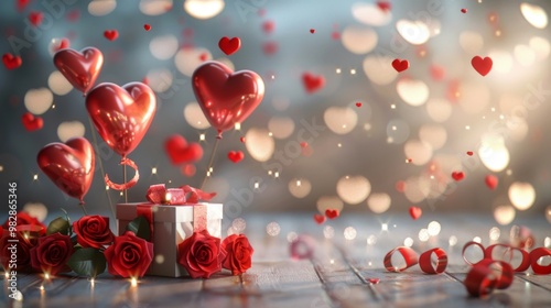 © sabyna75, Obraz premium Heart Balloons with Roses and Gifts in Romantic Setting
