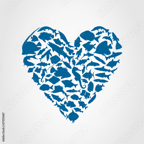 © aleksander1, Fototapeta premium Heart consists of fishes. A vector illustration