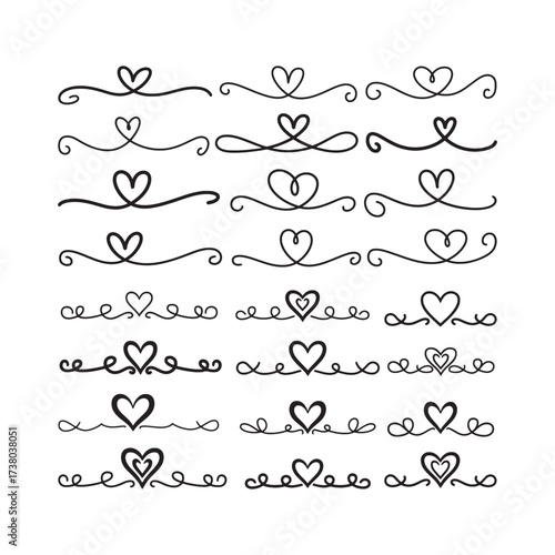Fototapeta premium Heart Divider Vector Set – Decorative Love Borders and Ornaments