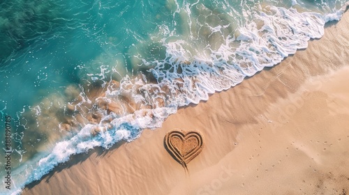 © CryptoCanvas, Fototapeta premium Heart drawing on sand with beach background viewed from above