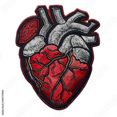 © Nahin, Naklejka premium heart embroidered patch badge on isolated transparent background.png