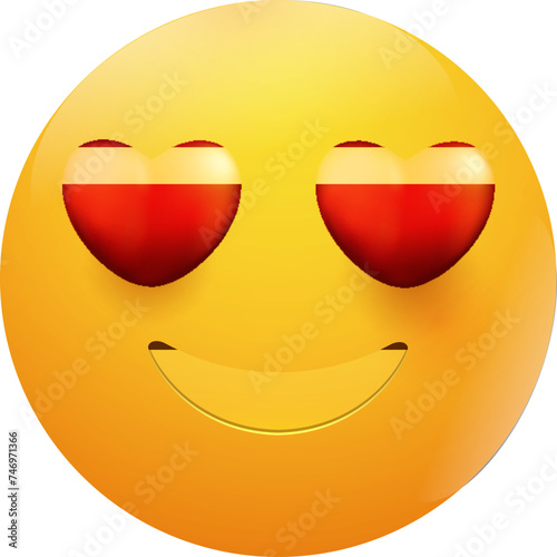 Fototapeta premium Heart eyes face emoji character in yellow and red color.