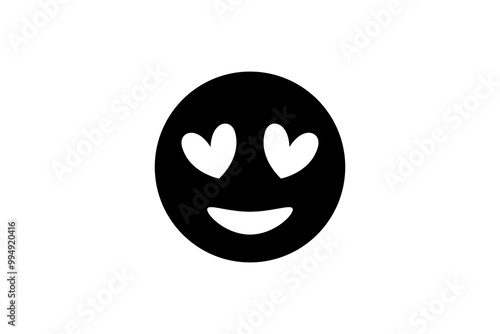 © MUN, Fototapeta premium Heart Eyes face emoji in black. Emoticon vector icon.