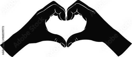 © Nila, Fototapeta premium Heart Hands Gesture Black Silhouette Vector Illustration