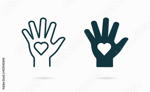 © lovemask, Obraz premium Heart in hand icon. Vector illustration.