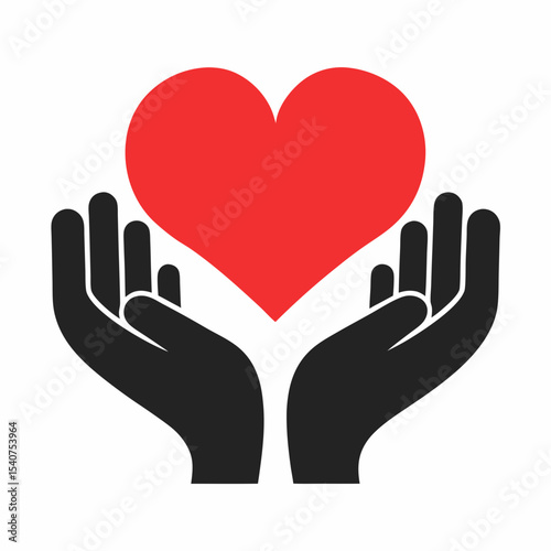 Obraz premium Heart in Hands Icon Charity and Care Vector Logo.