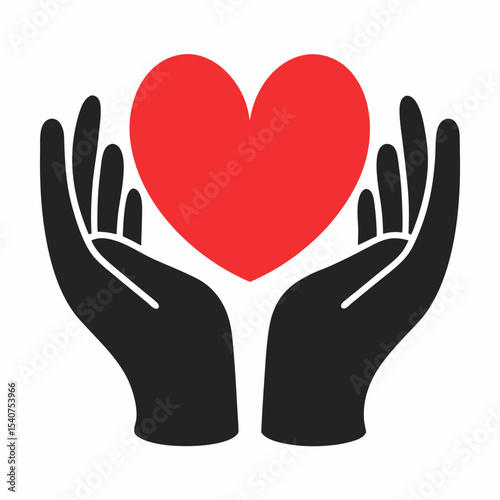 Obraz premium Heart in Hands Icon Charity and Care Vector Logo.
