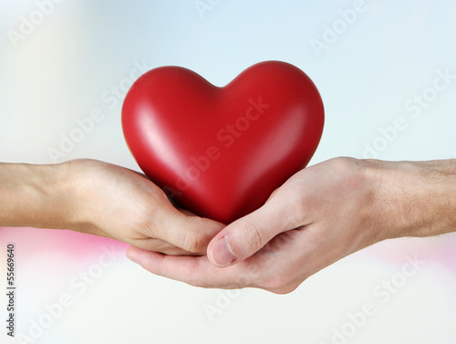 Obraz premium Heart in hands on light background