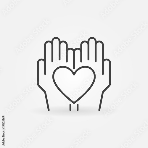 Obraz premium Heart in hands vector outline icon