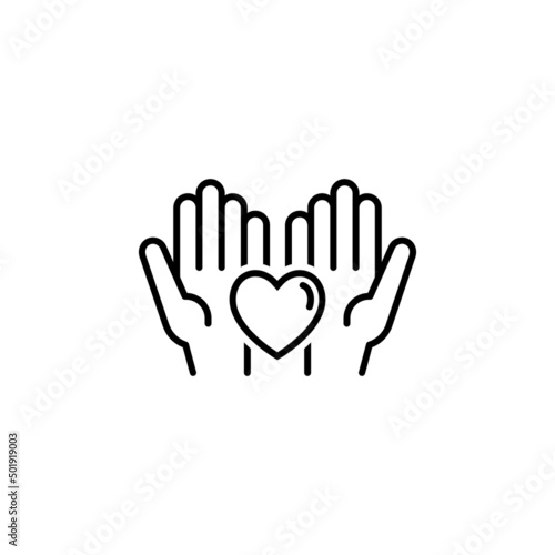© Ольга Мещерякова, Obraz premium Heart in palms flat vector icon. Human flat vector icon