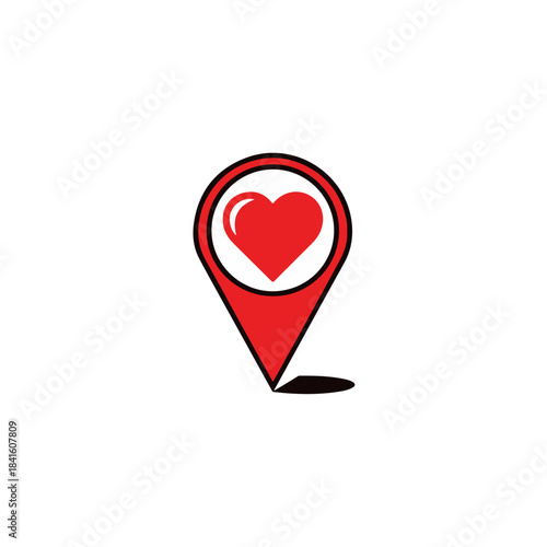 Fototapeta premium Heart location pin icon in red and black colors indicating a loved or...