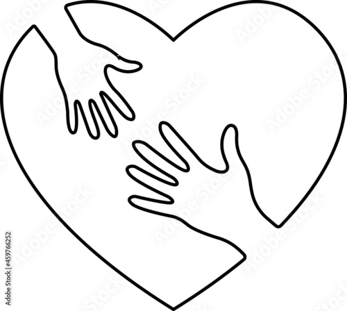 Obraz premium Heart Love Hands Couple. Vector art. Black and white. White background. One...