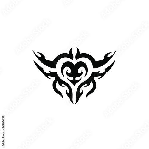 © FriskySloths, Fototapeta premium Heart Love Symbol Logo on White Background. Tribal Stencil Tattoo Design Concept. Flat Vector Illustration.