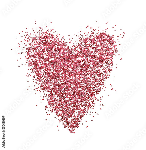 © New Africa, Obraz premium Heart made of pink glitter on white background, top view