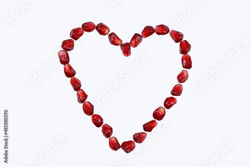 Obraz premium Heart made of pomegranate seeds, isolated on white background, copy space for...