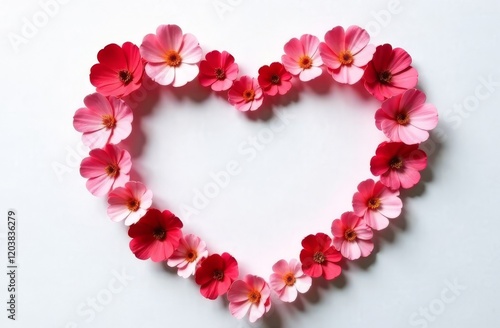 © Olga, Obraz premium Heart of delicate flowers on a white background. space for text