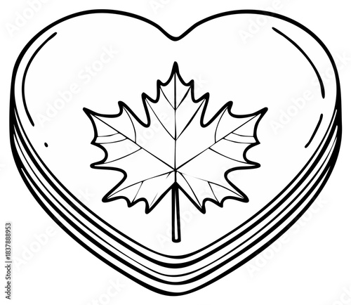 Obraz premium Heart outline with maple leaf symbol inside simple drawing