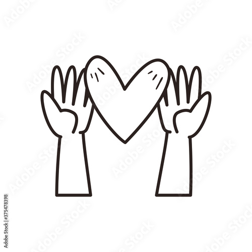 Obraz premium Heart over hands line style icon vector design