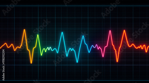 © Happy Photo Stock, Naklejka premium Heart rate variability HRV concept. Heart rate variability displayed on a heart monitor screen, illustrating health tracking and physiological data analysis.
