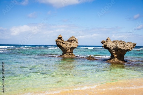 © Bossa Art, Fototapeta premium Heart Rock Formations at Kouri Island Shoreline, Okinawa, Japan
