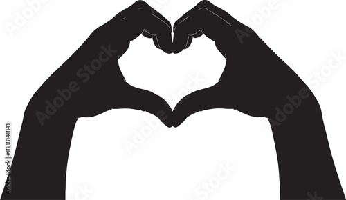 Fototapeta premium Heart Shape Hands Silhouette Isolated on White Background Vector Illustration