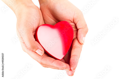 © Patryk Kosmider, Fototapeta premium Heart shape in hands as love symbol