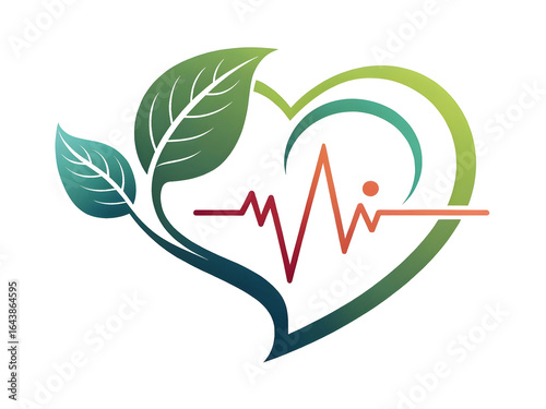 © Raisul, Naklejka premium Heart shape with leaves and heartbeat line leaf nature