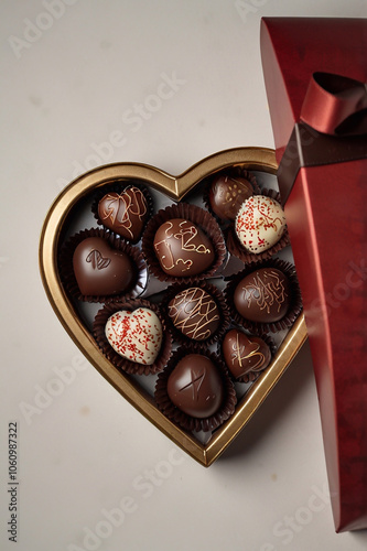Obraz premium Heart shaped box of chocolates isolated on white background, cut out
